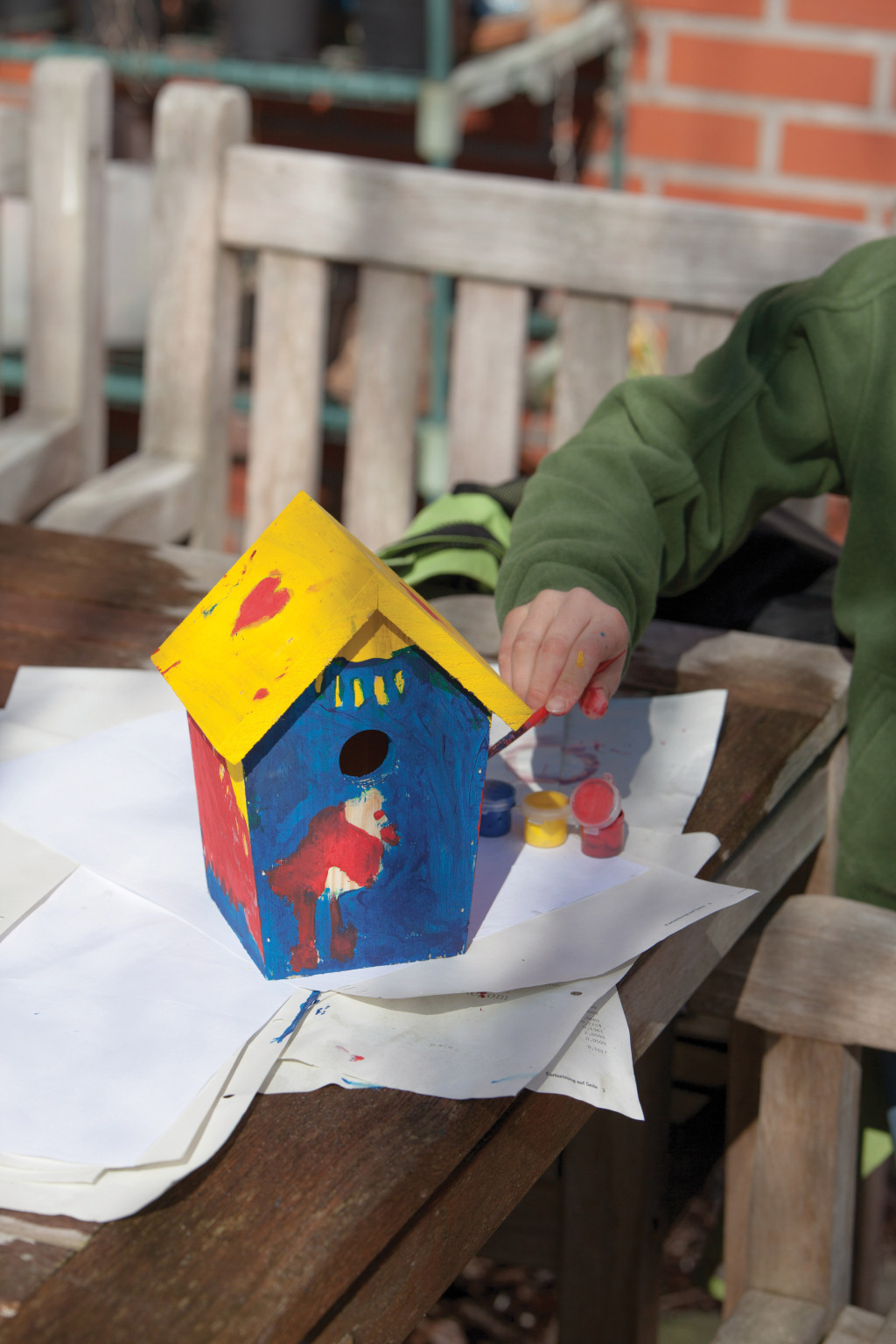 Fesd ki a saját madárházad gyönyörű színekkel: Natúr, fa madárház, 3 alapszínnel, festékkel és ecsettel. Keverd ki a saját kedvenc színeid! Keverj sárgát és kéket, hogy zöld legyen vagy a pirosat és a sárgát egy kis narancssárgáért. Ez a madárház a kék cinege számára lett tervezve. Emellett lakója lehet a búbos cinege, a barátcinege, a kormosfejű cinege és a fenyvescinege is. A madárház elhelyezésére a legjobb, ha valami csöndes, védettebb helyet választunk. Kerüljük a tűző napot vagy az eső által leginkább elérhető pontokat. Legyen észrevehető a madarak számára. Ősz a legalkalmasabb időpont a madárház tisztítására. A téli időszakban a madaraknak különösen szükségük van menedékre a hideg idő ellen.
